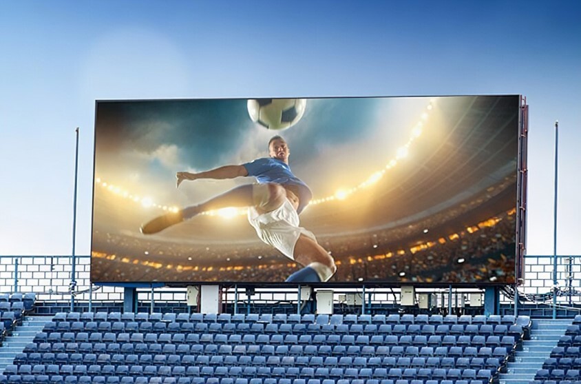 - Примеры: Главные табло на стадионах и аренах, бортовые экраны по периметру поля, бегущая строка, трансляция повторов и статистики.