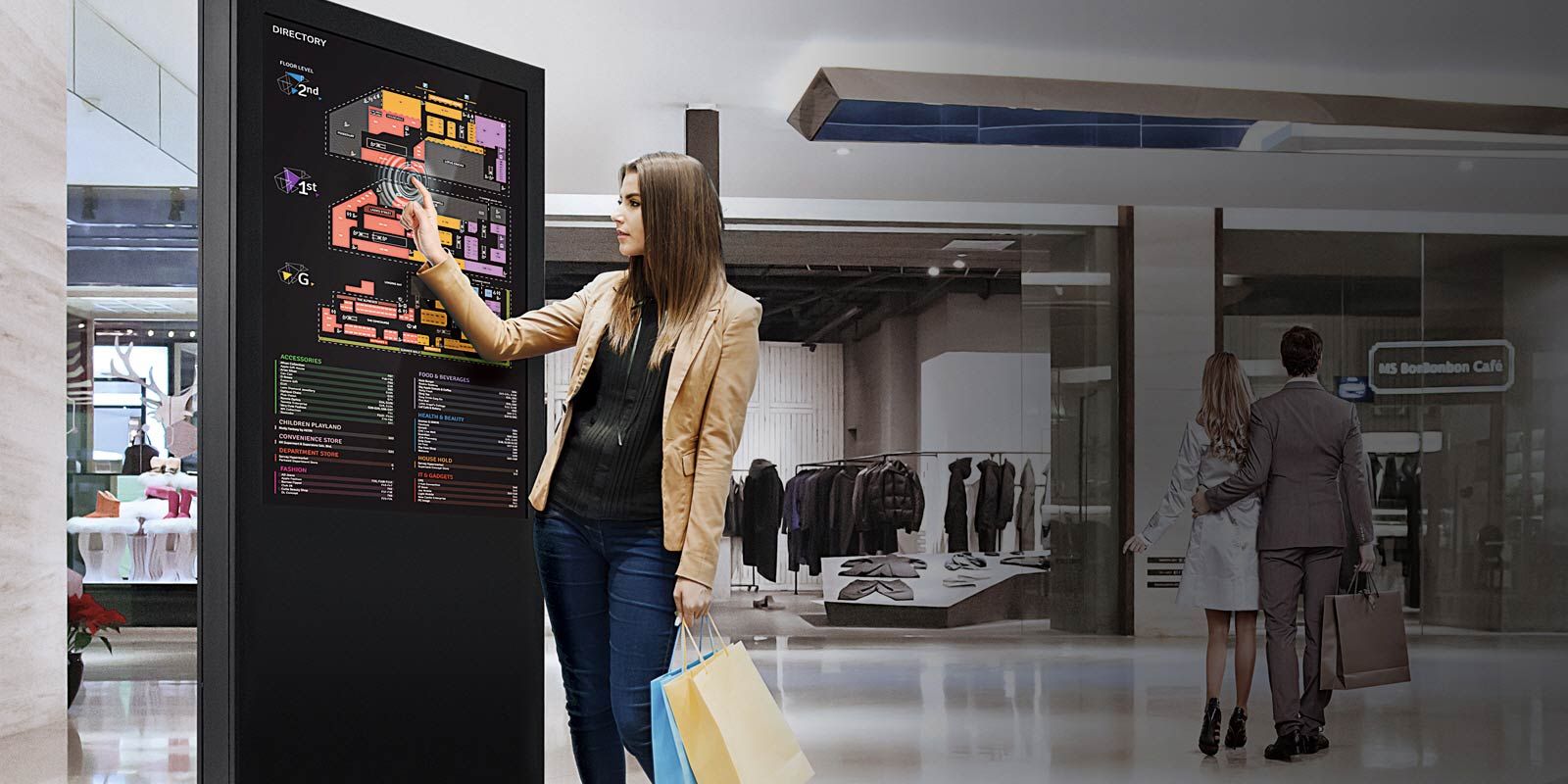 - Примеры: LED-витрины, ценники и полочные экраны в магазинах, медийные колонны, фоновые видеостены в зоне касс, транслирующие выгодные предложения.